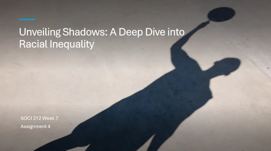 The SOCI 212 Week 7: Assignment 4 will explore a social problem. Your task involves creating a PowerPoint presentation to effectively communicate various aspects of racial inequality, including its history, current impact, and sociological interpretations. By the end of this How-To SOCI 212 Guide, you will know how to structure your presentation, analyse critical data, and apply sociological theories to deepen your understanding.