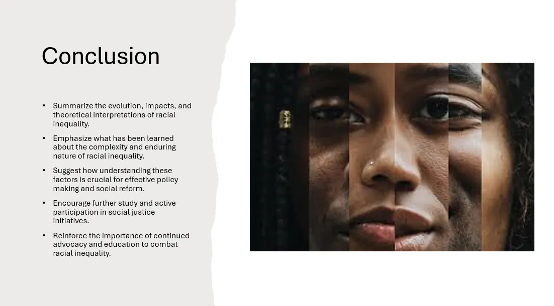 - Reflecting on the Importance of Understanding Racial Inequality: End by reflecting on how this knowledge can contribute to addressing and mitigating racial disparities.